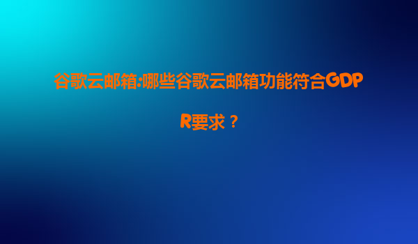 2025-08-03谷歌云郵箱:符合GDPR要求的功能解析 隨著全球數據保護法規的日益嚴格,企業選擇云服務時需確保其符合《通用數據保護條例》(GDPR)的要求。谷歌云郵箱(GoogleWorkspace中的Gmail企業版)作為領先的企業級郵...