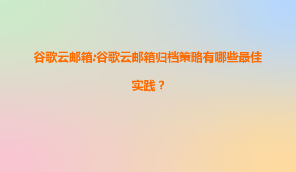2025-08-03谷歌云郵箱歸檔策略最佳實踐 一、谷歌云郵箱歸檔的核心價值 谷歌云郵箱(GoogleWorkspace)憑借其強大的云端存儲能力和智能管理工具,為企業提供了高效的郵件歸檔解決方案。歸檔不僅能滿足合規性要求...