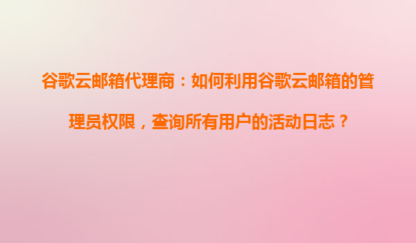 2025-10-30谷歌云郵箱代理商:如何利用谷歌云郵箱的管理員權(quán)限查詢所有用戶的活動日志? 引言 隨著企業(yè)信息化程度的不斷提高,郵箱作為企業(yè)內(nèi)部溝通的重要工具,其安全性、穩(wěn)定性及可管理性變得愈發(fā)重要。作為全球...
