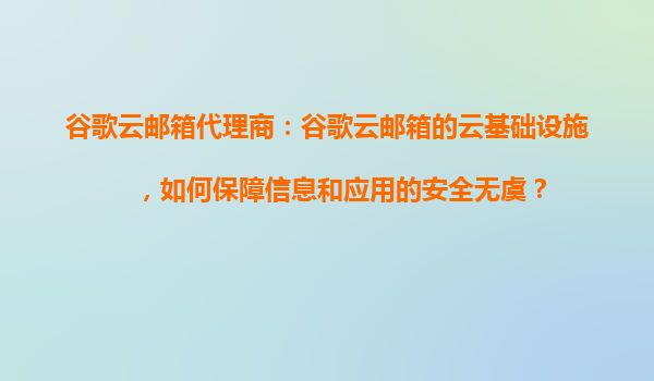 2025-10-30谷歌云郵箱代理商:谷歌云郵箱的云基礎(chǔ)設(shè)施如何保障信息和應(yīng)用的安全無虞? 一、引言 在當(dāng)今數(shù)字化時代,信息安全已成為企業(yè)運營的核心關(guān)切。各類企業(yè),無論是中小企業(yè)還是跨國集團(tuán),都在尋找可靠、安全的...