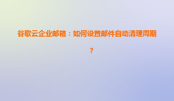 谷歌云企業郵箱:如何設置郵件自動清理周期? 一、為什么需要郵件自動清理? 隨著企業郵件數量激增,長期堆積的郵件不僅占用存儲空間,還可能影響系統效率。谷歌云企業郵箱通過自動清理功能,可幫...