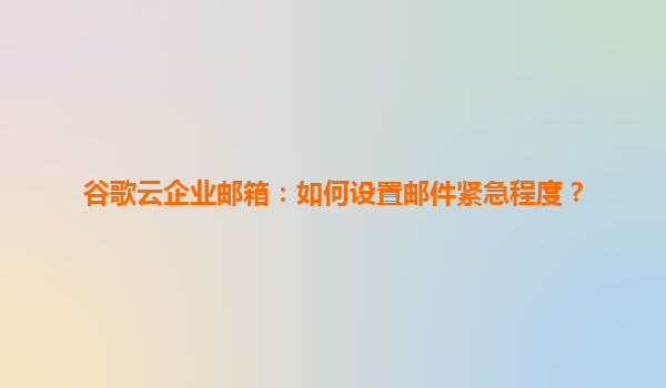 2025-04-16谷歌云企業郵箱:如何設置郵件緊急程度? 一、為什么需要設置郵件緊急程度? 在日常工作中,郵件的優先級直接影響溝通效率和任務處理速度。通過設置郵件緊急程度,可以快速向收件人...