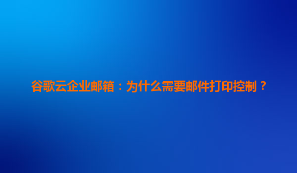 2025-04-15谷歌云企業(yè)郵箱:為什么需要郵件打印控制? 在數(shù)字化辦公日益普及的今天,企業(yè)郵箱已成為信息傳遞的核心工具。然而,隨著數(shù)據(jù)安全與合規(guī)要求的提升,企業(yè)對(duì)郵件管理的精細(xì)化需求也在增加。其中,郵...