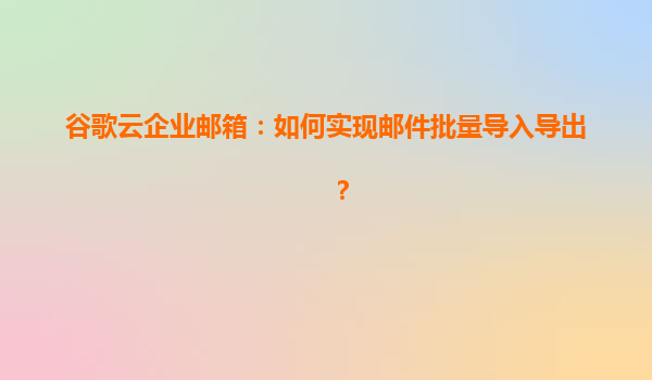 2025-04-15谷歌云企業(yè)郵箱:如何實(shí)現(xiàn)郵件批量導(dǎo)入導(dǎo)出? 一、谷歌云企業(yè)郵箱的核心優(yōu)勢(shì) 谷歌云企業(yè)郵箱(GoogleWorkspace)憑借其全球化基礎(chǔ)設(shè)施和智能化功能,為企業(yè)提供高效、安全的郵件管理服務(wù)。其核心優(yōu)勢(shì)包括...