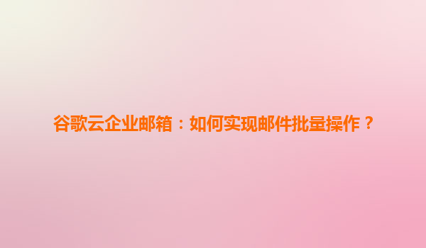 2025-04-14谷歌云企業(yè)郵箱:如何實(shí)現(xiàn)郵件批量操作? 一、為什么需要郵件批量操作? 在企業(yè)日常運(yùn)營(yíng)中,郵件管理是高頻需求。尤其是中大型企業(yè),每天需要處理大量郵件,例如客戶咨詢、內(nèi)部通知、營(yíng)銷(xiāo)推廣...