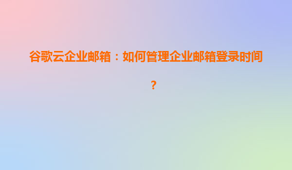 2025-04-14谷歌云企業(yè)郵箱:如何高效管理企業(yè)郵箱登錄時(shí)間 一、谷歌云企業(yè)郵箱的登錄時(shí)間管理必要性 在數(shù)字化辦公場(chǎng)景中,企業(yè)郵箱作為核心溝通工具,其安全性直接影響業(yè)務(wù)運(yùn)轉(zhuǎn)。谷歌云企業(yè)郵箱通過(guò)靈活的登錄時(shí)間管...
