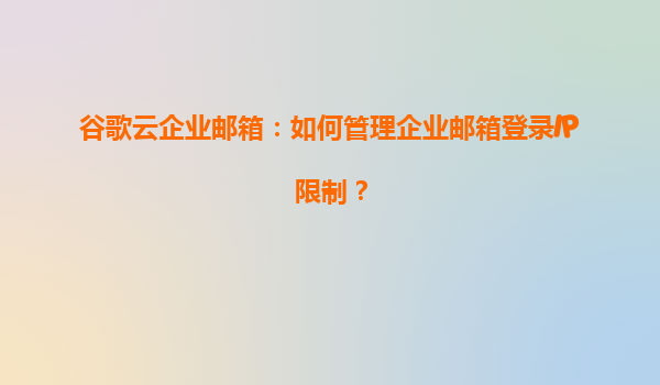2025-04-11谷歌云企業(yè)郵箱:如何管理企業(yè)郵箱登錄IP限制? 一、谷歌云企業(yè)郵箱的核心優(yōu)勢(shì) 谷歌云企業(yè)郵箱(GoogleWorkspace)憑借其強(qiáng)大的云基礎(chǔ)設(shè)施和安全性功能,成為企業(yè)郵箱管理的首選方案。以下是其核心優(yōu)...