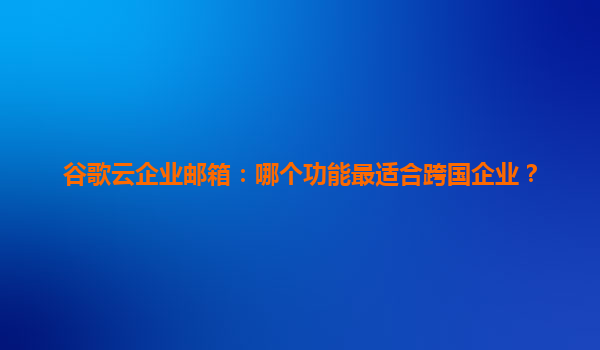 2025-04-07谷歌云企業(yè)郵箱:跨國企業(yè)的高效協(xié)作與全球化管理解決方案 一、全球化布局:無縫覆蓋跨國企業(yè)的多區(qū)域需求 1.1谷歌云全球服務(wù)器網(wǎng)絡(luò)的優(yōu)勢 谷歌云...