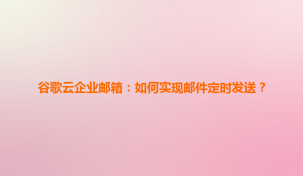 2025-04-06谷歌云企業(yè)郵箱如何實現(xiàn)郵件定時發(fā)送 定時發(fā)送郵件的應(yīng)用場景 在跨國協(xié)作、跨時區(qū)溝通或營銷活動中,定時發(fā)送郵件能顯著提升工作效率。通過谷歌云企業(yè)郵箱結(jié)合第三方工具(如GoogleWorkspace...