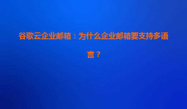 2025-04-06谷歌云企業(yè)郵箱:為什么企業(yè)郵箱要支持多語言? 一、多語言支持對企業(yè)的重要性 在全球化的商業(yè)環(huán)境中,企業(yè)郵箱不僅是內(nèi)部溝通的工具,更是連接全球客戶與合作伙伴的橋梁。支持多語言的企業(yè)郵箱能夠幫助企...
