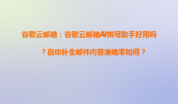 2025-04-04谷歌云郵箱AI撰寫助手:智能辦公的未來與代理商的協(xié)同優(yōu)勢 一、谷歌云郵箱AI撰寫助手的核心功能 谷歌云郵箱(GoogleWorkspace)的AI撰寫助手基于自然語言處理(NLP)技術(shù),能夠通過分析郵件上下文、用...