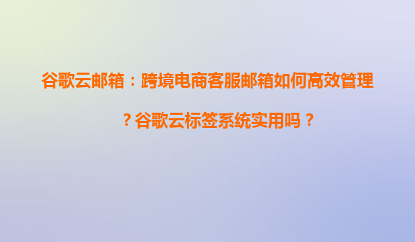 2025-04-04跨境電商客服郵箱的高效管理與谷歌云標(biāo)簽系統(tǒng)實踐 一、跨境電商客服郵箱管理的核心挑戰(zhàn) 跨境電商客服團(tuán)隊常面臨以下問題: 海量郵件處理:多國家客戶咨詢導(dǎo)致每日郵件量激增; ...