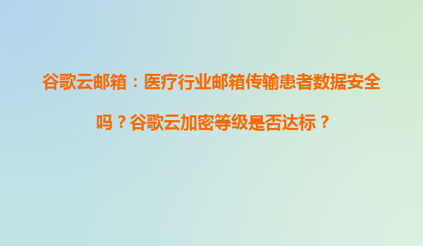 2025-04-04谷歌云郵箱在醫(yī)療行業(yè)傳輸患者數(shù)據(jù)的安全性分析 一、醫(yī)療行業(yè)數(shù)據(jù)安全的特殊要求 醫(yī)療行業(yè)涉及患者隱私數(shù)據(jù)(如病歷、診斷記錄等)的傳輸需滿足嚴(yán)格法規(guī)要求,包括HIPAA(美國健康保險流通與責(zé)任法案)、GD...