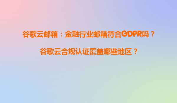 2025-04-04谷歌云郵箱在金融行業(yè)的GDPR合規(guī)性分析 金融行業(yè)對數(shù)據(jù)隱私和合規(guī)性要求極高,而谷歌云郵箱(GoogleWorkspace)通過其嚴格的安全措施和全球合規(guī)認證,成為許多金融機構(gòu)的首選。...