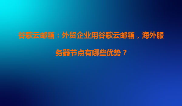 2025-04-04谷歌云郵箱在外貿(mào)企業(yè)中的應(yīng)用與海外服務(wù)器節(jié)點優(yōu)勢分析 一、谷歌云郵箱的核心優(yōu)勢 谷歌云郵箱(GoogleWorkspace)作為全球領(lǐng)先的企業(yè)級郵件解決方案,憑借其技術(shù)實力與全球化基礎(chǔ)設(shè)施,為外貿(mào)企業(yè)提...