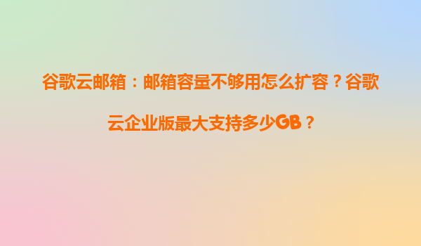 2025-04-04谷歌云郵箱容量擴容指南與企業(yè)版存儲容量解析 一、谷歌云郵箱的核心優(yōu)勢 谷歌云郵箱(GmailwithGoogleWorkspace)作為全球領(lǐng)先的企業(yè)級郵箱服務(wù),在存儲管理與協(xié)作場景中展現(xiàn)以下核心優(yōu)勢: ...