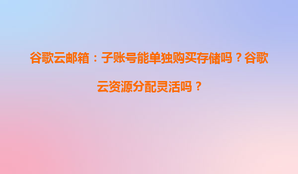 2025-04-04谷歌云郵箱子賬號存儲與資源分配解析 一、谷歌云郵箱子賬號能否單獨購買存儲? 1.1子賬號存儲分配機制 谷歌云郵箱(GoogleWorkspace)采用集中式存儲池管理,企業(yè)主賬號可靈活分配存儲...