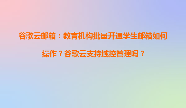 4008-020-360 谷歌云郵箱在教育機構(gòu)的批量開通與域控管理實踐 一、谷歌云郵箱在教育場景的核心價值 谷歌云郵箱(GoogleWorkspaceforEducation)為教育機構(gòu)提供完整的數(shù)字化協(xié)作生態(tài),其批量開戶與域控能力可顯著...