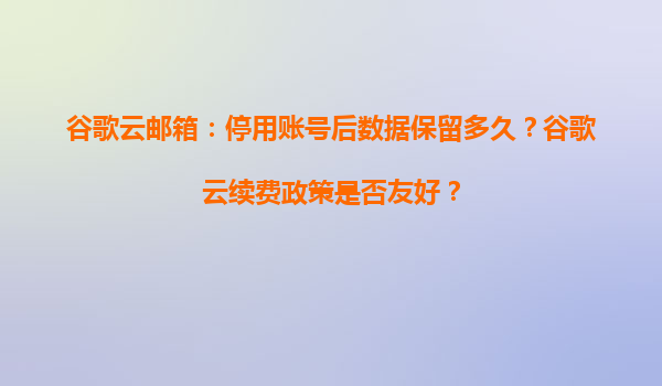 2025-04-04谷歌云郵箱與續(xù)費政策解析:數(shù)據(jù)保留機制與用戶友好性 一、谷歌云郵箱停用后的數(shù)據(jù)保留機制 谷歌云郵箱(GoogleWorkspace)在用戶主動停用賬號或管理員禁用賬號后,數(shù)據(jù)保留策略體現(xiàn)其責任與用戶...