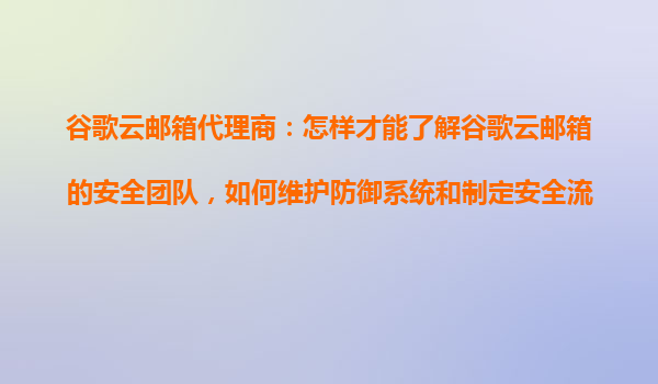 2025-10-25谷歌云郵箱代理商指南:安全團(tuán)隊(duì)、防御系統(tǒng)與流程解析 一、谷歌云郵箱的安全團(tuán)隊(duì)如何運(yùn)作? 谷歌云郵箱(GmailforBusiness)的安全團(tuán)隊(duì)由全球頂尖的安全專(zhuān)家組成,專(zhuān)注于威脅檢測(cè)、數(shù)據(jù)保護(hù)和系統(tǒng)加...