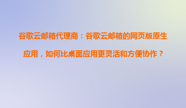 2025-10-25谷歌云郵箱代理商:谷歌云郵箱的網(wǎng)頁(yè)版原生應(yīng)用,如何比桌面應(yīng)用更靈活和方便協(xié)作? 引言 隨著云計(jì)算技術(shù)的快速發(fā)展,越來(lái)越多的企業(yè)和個(gè)人選擇云端辦公工具。谷歌云郵箱(Gmail)作為全球領(lǐng)先的電子郵件服務(wù)之...