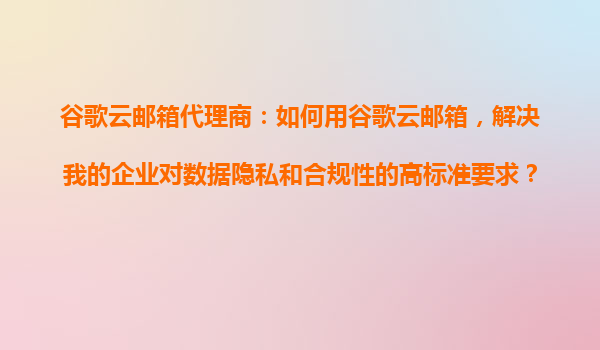 2025-10-25谷歌云郵箱代理商:如何用谷歌云郵箱解決企業(yè)對(duì)數(shù)據(jù)隱私和合規(guī)性的高標(biāo)準(zhǔn)要求 引言 在數(shù)字化時(shí)代,企業(yè)對(duì)電子郵件系統(tǒng)的數(shù)據(jù)隱私和合規(guī)性要求越來(lái)越高。谷歌云郵箱(GoogleWorkspace)作為全球領(lǐng)先的企業(yè)...