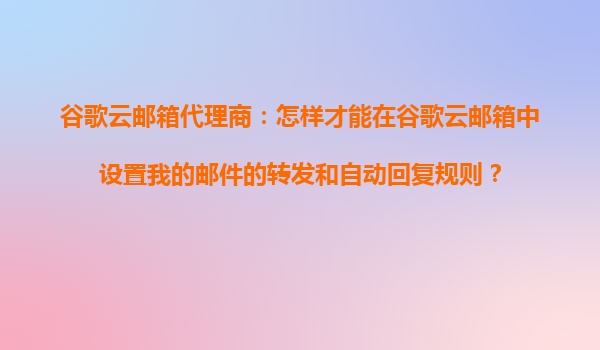 2025-10-25谷歌云郵箱代理商:高效郵件管理指南 作為現(xiàn)代企業(yè)溝通的核心工具,電子郵件的高效管理直接關(guān)系到工作效率。谷歌云郵箱(GmailforBusiness)因其強大的功能、穩(wěn)定的性能和靈活的定制性,成為眾多企業(yè)的首選。本文...