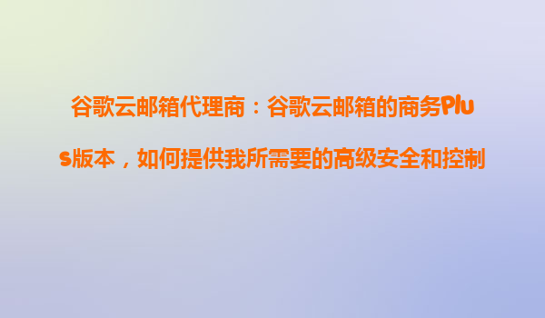 2025-10-25谷歌云郵箱商務(wù)Plus版本的高級安全與控制功能解析 為何選擇谷歌云郵箱商務(wù)Plus版? 谷歌云郵箱商務(wù)Plus版本專為中大型企業(yè)設(shè)計,提供比標準版更強大的安全策略、管理工具和數(shù)據(jù)保護能力。其核心優(yōu)勢在于將...