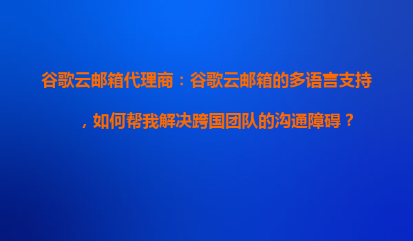 2025-10-25谷歌云郵箱代理商:谷歌云郵箱的多語言支持,如何幫我解決跨國團隊的溝通障礙? 在國際化的商業(yè)環(huán)境中,跨國團隊協(xié)作已成為常態(tài)。然而,語言差異、時區(qū)障礙以及信息同步問題往往成為團隊高效溝通的絆腳石。谷歌云...