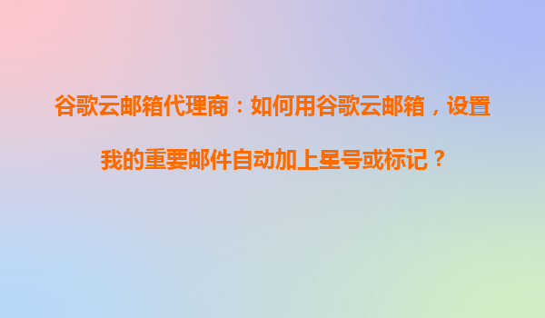 2025-10-24如何利用谷歌云郵箱高效管理重要郵件:自動(dòng)加星標(biāo)與標(biāo)記指南一、谷歌云郵箱的核心優(yōu)勢(shì)谷歌云郵箱(GmailforBusiness)作為企業(yè)級(jí)郵件解決方案,憑借其強(qiáng)大的AI功能、無(wú)縫協(xié)作能力以及15GB起的超大存儲(chǔ)空間...
