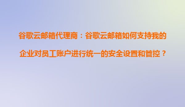 2025-10-23谷歌云郵箱代理商:谷歌云郵箱如何支持企業(yè)對(duì)員工賬戶進(jìn)行統(tǒng)一安全設(shè)置與管控 一、企業(yè)郵箱管理的核心挑戰(zhàn) 在數(shù)字化辦公場(chǎng)景中,企業(yè)郵箱不僅是溝通工具,更是數(shù)據(jù)安全的要塞。分散的賬戶管理...