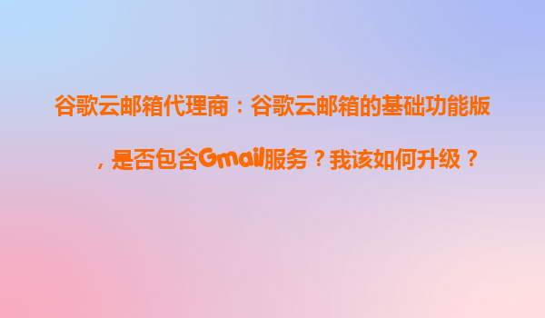2025-10-23谷歌云郵箱代理商:全面解析Gmail基礎(chǔ)服務(wù)與升級(jí)策略 一、谷歌云郵箱基礎(chǔ)功能版是否包含Gmail服務(wù)? 谷歌云郵箱(GoogleWorkspace)的基礎(chǔ)功能版完全包含Gmail核心服務(wù),但功能可能存在限制。以下是...