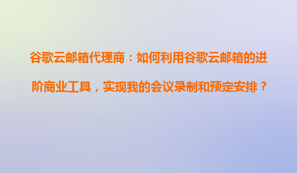 2025-10-23谷歌云郵箱代理商:如何利用谷歌云郵箱的進(jìn)階商業(yè)工具實(shí)現(xiàn)會(huì)議錄制和預(yù)定安排 一、谷歌云郵箱的商業(yè)優(yōu)勢(shì) 谷歌云郵箱(GmailforBusiness)作為企業(yè)級(jí)郵件解決方案,整合...