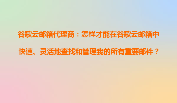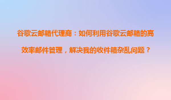 2025-10-23谷歌云郵箱代理商:如何利用高效率郵件管理解決收件箱雜亂問題 引言 在當(dāng)今快節(jié)奏的工作環(huán)境中,電子郵件已成為溝通的核心工具,但隨之而來的收件箱雜亂問題也讓許多人頭疼。作為...
