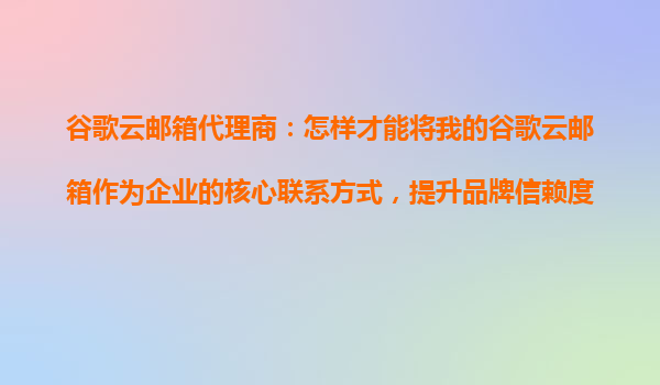 4008-020-360 谷歌云郵箱代理商:如何將其作為企業(yè)核心聯(lián)系方式,提升品牌信賴度? 一、為什么選擇谷歌云郵箱作為企業(yè)核心聯(lián)系方式? 在現(xiàn)代商業(yè)環(huán)境中,企業(yè)聯(lián)系方式的專業(yè)性和可靠性直接影響客戶對(duì)品牌的信任。谷歌云...
