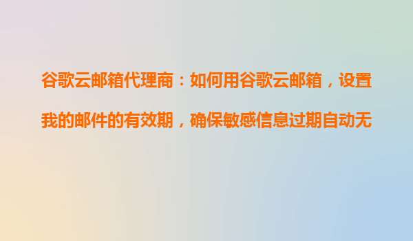 2025-10-23谷歌云郵箱代理商:如何用谷歌云郵箱設(shè)置郵件有效期,確保敏感信息過期自動(dòng)無法開啟? 一、為什么需要郵件有效期功能? 隨著企業(yè)數(shù)字化程度的提高,電子郵件已成為傳遞敏感信息的主要渠道之一...