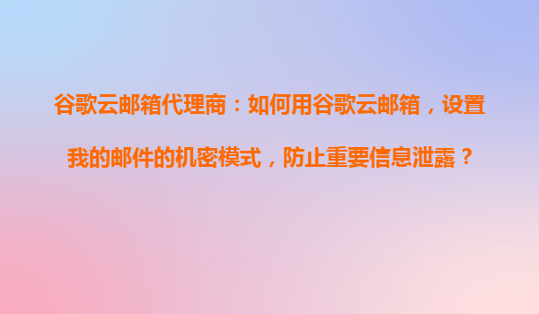 2025-10-22谷歌云郵箱代理商:如何用谷歌云郵箱設(shè)置郵件的機(jī)密模式,防止重要信息泄露? 一、谷歌云郵箱的機(jī)密模式簡介 谷歌云郵箱(GoogleWorkspace)作為企業(yè)級(jí)郵件服務(wù),提供了強(qiáng)大的數(shù)...