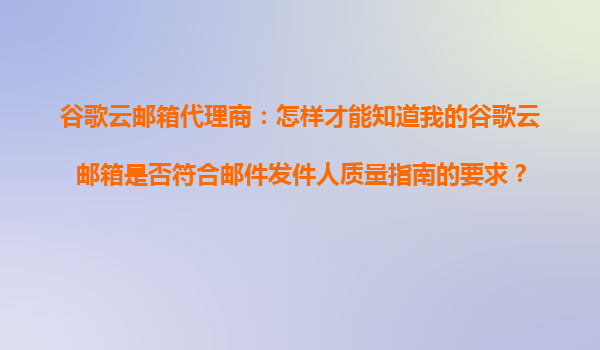 2025-10-22谷歌云郵箱代理商指南:如何確保您的郵箱符合谷歌郵件發(fā)件人質(zhì)量要求? 一、谷歌郵件發(fā)件人質(zhì)量指南的核心要求 谷歌的郵件發(fā)件人質(zhì)量指南(GoogleSenderGuide...