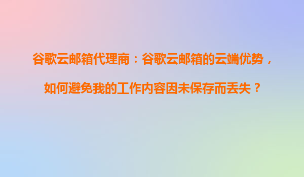 2025-10-22谷歌云郵箱的云端優(yōu)勢(shì):如何避免工作內(nèi)容丟失 實(shí)時(shí)自動(dòng)保存,告別手動(dòng)保存的煩惱 谷歌云郵箱基于云端技術(shù),所有編輯中的郵件草稿都會(huì)實(shí)時(shí)自動(dòng)同步至服務(wù)器。無論是撰寫長郵件時(shí)突然斷網(wǎng),...