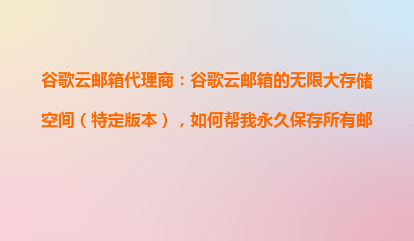2025-10-22谷歌云郵箱代理商:谷歌云郵箱的無限大存儲(chǔ)空間(特定版本),如何幫我永久保存所有郵件? 一、谷歌云郵箱的無限存儲(chǔ)空間特性 谷歌云郵箱(GoogleWorkspace)在其特定版本(如企業(yè)版或教育版)中提供了一項(xiàng)核...