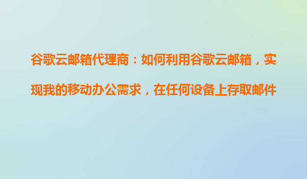 2025-10-22谷歌云郵箱代理商:如何利用谷歌云郵箱,實(shí)現(xiàn)移動(dòng)辦公需求 引言 在當(dāng)今快節(jié)奏的商業(yè)環(huán)境中,移動(dòng)辦公已成為企業(yè)提升效率的關(guān)鍵。無論是出差、在家辦公,還是在...