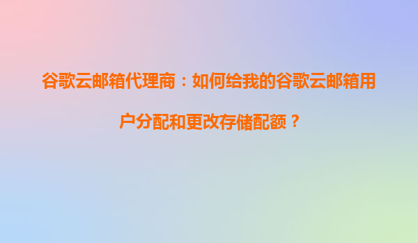 2025-10-18谷歌云郵箱代理商:如何給用戶分配和更改存儲(chǔ)配額 一、谷歌云郵箱的存儲(chǔ)管理優(yōu)勢(shì) 作為全球領(lǐng)先的云服務(wù)提供商,谷歌云郵箱(GoogleWorkspace)以其強(qiáng)大的存儲(chǔ)管理功能備受企業(yè)青睞。以下是谷...