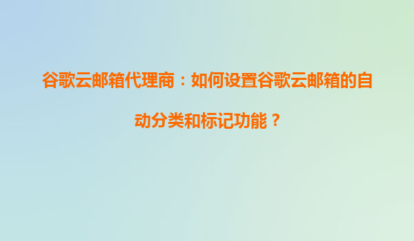 2025-10-18谷歌云郵箱代理商:如何設(shè)置谷歌云郵箱的自動(dòng)分類和標(biāo)記功能? 引言 隨著企業(yè)數(shù)字化轉(zhuǎn)型的加速,高效的郵件管理成為提升工作效率的關(guān)鍵。谷歌云郵箱(GoogleWo...