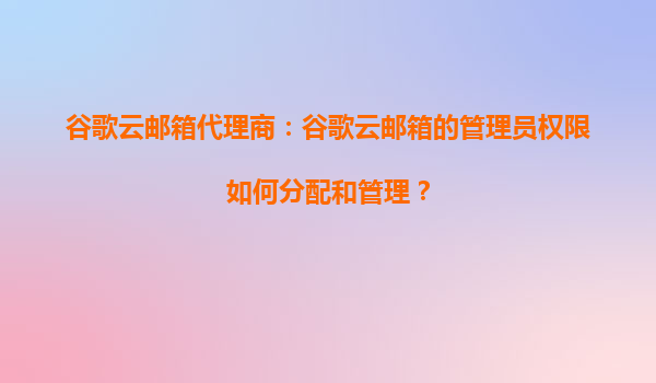 2025-10-18谷歌云郵箱代理商:谷歌云郵箱的管理員權(quán)限分配與管理 作為全球領(lǐng)先的云計(jì)算服務(wù)提供商,谷歌云(GoogleCloud)不僅提供強(qiáng)大的計(jì)算和存儲(chǔ)能力,還為企業(yè)用戶提供了高效安全的郵箱服務(wù)。谷歌云郵箱(GoogleWorkspa...