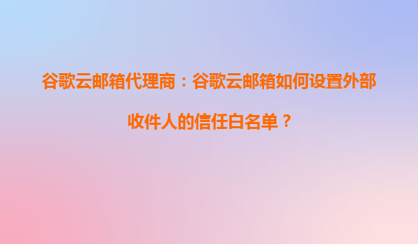 2025-10-18谷歌云郵箱代理商指南:如何設(shè)置外部收件人的信任白名單 一、谷歌云郵箱的核心優(yōu)勢(shì) 谷歌云郵箱(GSuite/GmailforBusiness)作為企業(yè)級(jí)電子郵件解決方案,憑借以下優(yōu)勢(shì)成為全球企業(yè)的首選: ...