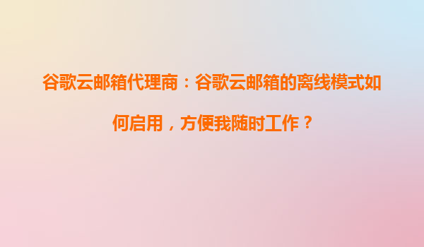 4008-020-360 谷歌云郵箱代理商解析:如何啟用谷歌云郵箱離線模式,提升工作效率? 一、谷歌云郵箱離線模式簡(jiǎn)介 谷歌云郵箱(Gmail)作為全球領(lǐng)先的企業(yè)級(jí)郵箱服務(wù),其離線模式允許用戶在無(wú)網(wǎng)絡(luò)連接時(shí)仍能查看、撰寫(xiě)和管...