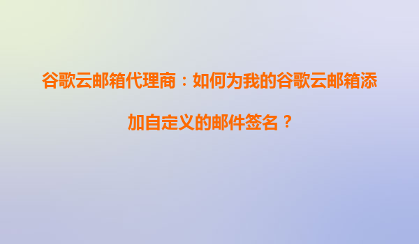 2025-10-18谷歌云郵箱代理商指南:如何為您的谷歌云郵箱添加自定義郵件簽名 在當(dāng)今數(shù)字化辦公環(huán)境中,一封專業(yè)的電子郵件往往能給人留下深刻的印象。而郵件簽名作為郵件的重要組成部分,不僅能展示您的聯(lián)系方式,還能...