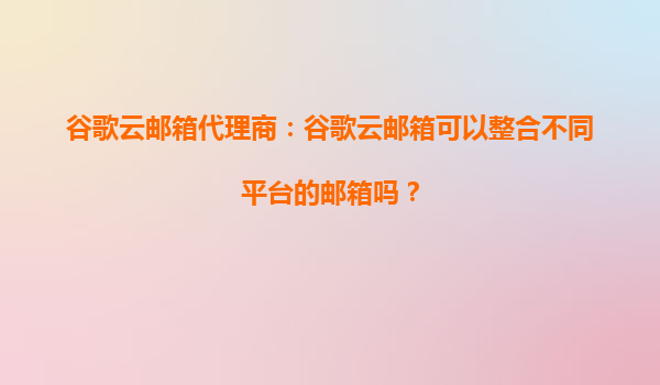 2025-10-14谷歌云郵箱代理商:谷歌云郵箱可以整合不同平臺的郵箱嗎? 什么是谷歌云郵箱? 谷歌云郵箱(GoogleWorkspace,原名GSuite)是谷歌為企業(yè)、教育機構(gòu)及個人用戶提供的專業(yè)電子郵件服務(wù)。它基于Gmail的核心...