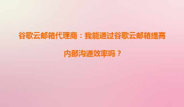2025-10-14谷歌云郵箱代理商:我能通過谷歌云郵箱提高內(nèi)部溝通效率嗎? 引言 在當今數(shù)字化工作環(huán)境中,高效的內(nèi)部溝通是企業(yè)成功的關(guān)鍵因素之一。許多企業(yè)正在尋找可靠的工具來優(yōu)...