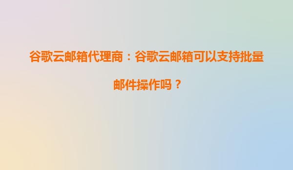 2025-10-14谷歌云郵箱代理商:谷歌云郵箱可以支持批量郵件操作嗎? 一、谷歌云郵箱的批量郵件操作支持 在現(xiàn)代企業(yè)和機構中,高效的電子郵件管理是日常運營的重要組成部分...